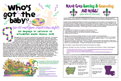 Fortunately for me, Cajun girl, Mia McDaniel of Putting Words in Your Mouth has plenty of Mardi Gras materials. These are two of my favorites. Click the picture to go to Mia’s Teachers Pay Teachers Store