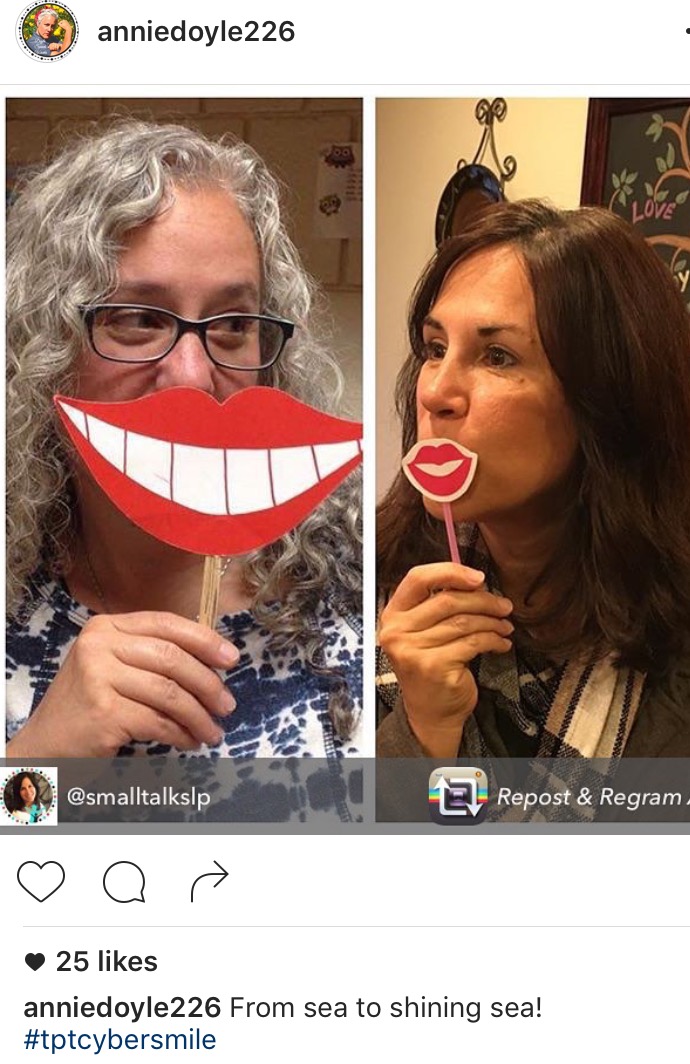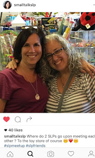 It all started several years ago, when my soul sister and I started sharing photos and quips on social media. We had been liking and commenting on each other’s SLP-based photos back and forth for a while, when one day I posted an activity using some winter themed stampers. My social media and SLP compatriot “hearted” the photo and expressed how she liked the stamps. I had ordered them from Oriental Trading and received triple of each stamp, I think, so, I asked her if she wanted a set. She was thrilled and I was happy to send them across the country to brighten her day. The rest, as they say, is history. A cross-country friendship between Small Talk, SLP and Doyle Speech Works was born, moreover the relationship between Pam and Annie has flourished ever since.