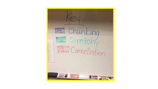 - My student rolled the die, matched the color to the corresponding strategy written on the whiteboard and read the statistics using the strategy.