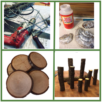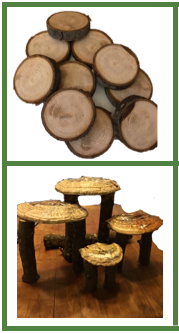 I began the process by applying Mod Podge® to all the pieces to seal them and give them a glossy finish. My husband helped me cut stepping stones and ladder rungs. We devised a seesaw and a swing hung from a fungus canopy. He cut pieces for a table, chairs, and benches. As my friends commented, “It’s enchanted.” I couldn’t help playing, arranging pieces and rearranging them. Oh my word, had I had a village like this as a little girl, I would have played on end.